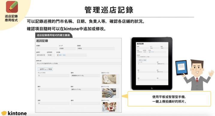 kintone 能快速建立巡店紀錄表,像是: